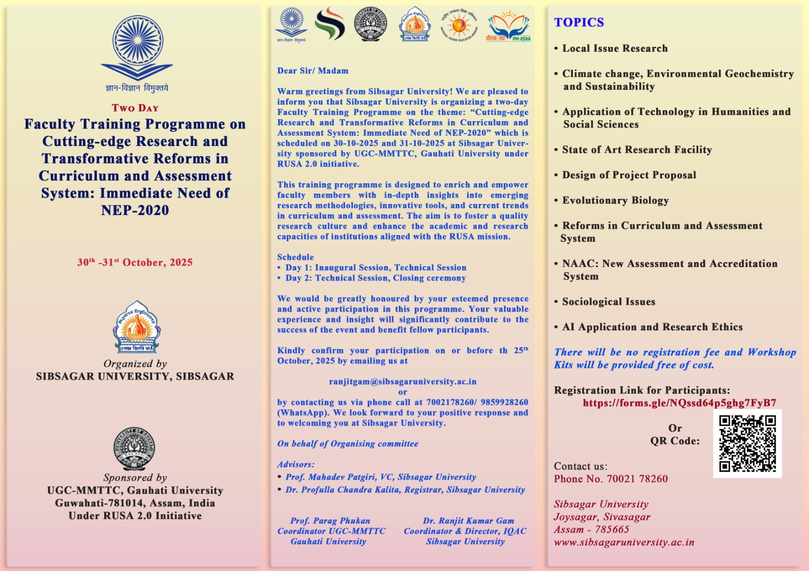 Sibsagar University, a premier seat of higher education in this part of the state, is situated at Joysagar beside the historic tank which stands testimony to the hallowed memory of Sati Joymati, the Ahom Queen of the 17th century. This college is located amidst a picturesque atmosphere, about 5 km south-west of Sivasagar Town, quite away from the din and bustle of town-life. It was established in 1947, coinciding with independence, upholding the aura of that awakening and has traverses a long way since then. Read More